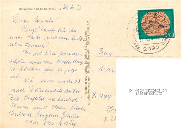 73687996 alte Postkarte Gluecksburg Ostseebad Fliegeraufnahme mit Schloss postalisch gelaufen Erhaltung siehe scans [WerneD78] KatCode: 11110001059113