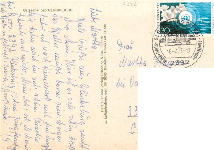 73941102 alte Postkarte Gluecksburg Ostseebad Fliegeraufnahme mit Schloss postalisch gelaufen Erhaltung siehe scans [FriedD77] KatCode: 11110001059113