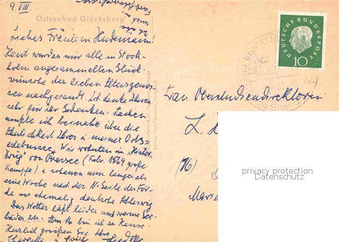 72782597 alte Postkarte Gluecksburg Ostseebad Fliegeraufnahme mit Strand postalisch gelaufen Erhaltung siehe scans [LiesaD40] KatCode: 11110001059113