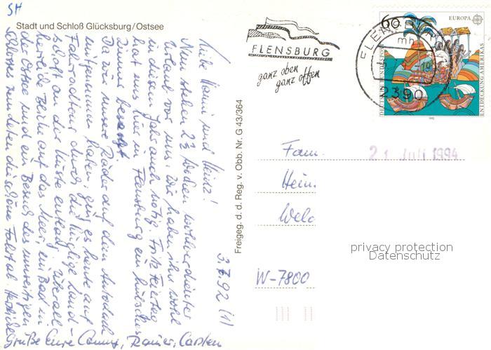 73757131 alte Postkarte Gluecksburg Ostseebad Fliegeraufnahme Stadt und Schloss Gluecksburg postalisch gelaufen Erhaltung siehe scans [LiesaD40] KatCode: 11110001059113