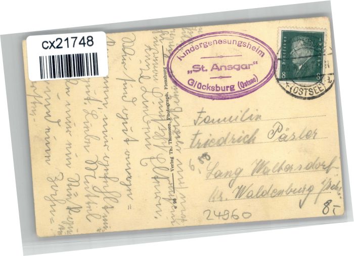 30738470 alte Postkarte Gluecksburg Ostseebad Gluecksburg Ostsee Kindergenesungsheim St Ansgar postalisch gelaufen KatCode: 11110001059113