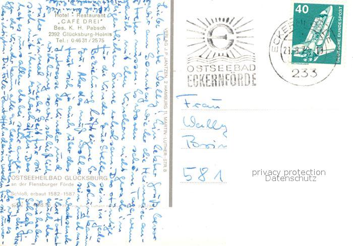 73616733 alte Postkarte Gluecksburg Ostseebad Hotel Restaurant Cafe Drei Schloss Gluecksburg Fliegeraufnahme postalisch gelaufen Erhaltung siehe scans [WerneD78] KatCode: 11110001059113