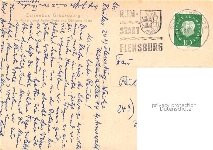72878552 alte Postkarte Gluecksburg Ostseebad im Hintergrund Aussenfoerde und Daenische Kueste Fliegeraufnahme postalisch gelaufen Erhaltung siehe scans [FriedD77] KatCode: 11110001059113