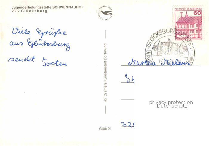 72784726 alte Postkarte Gluecksburg Ostseebad Jugenderholungsstaette Schwennauhof Schloss postalisch gelaufen Erhaltung siehe scans [LiesaD40] KatCode: 11110001059113