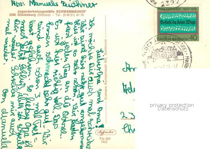 73719189 alte Postkarte Gluecksburg Ostseebad Jugenderholungsstaette Schwennauhof postalisch gelaufen Erhaltung siehe scans [WerneD78] KatCode: 11110001059113