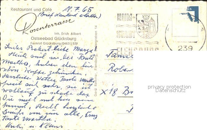 72129154 alte Postkarte Gluecksburg Ostseebad Restaurant CafeRosenterrasse postalisch gelaufen Erhaltung siehe scans KatCode: 11110001059113