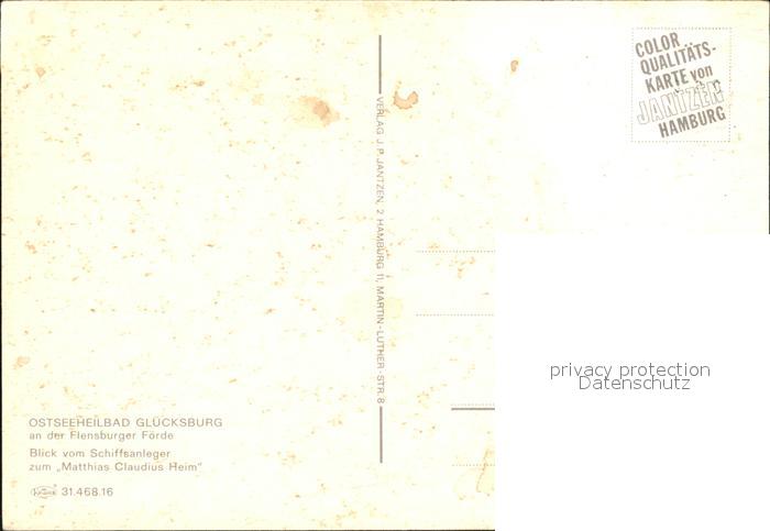 72579218 Gluecksburg Ostseebad Schiffsanleger Matthias Claudius Heim postalisch nicht gelaufen Erhaltung siehe scans [LiesaD40] KatCode: 11110001059113