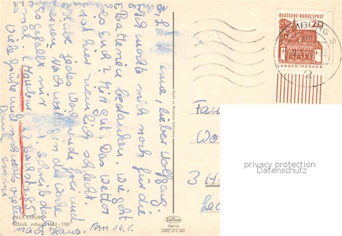 73667869 alte Postkarte Gluecksburg Ostseebad Schloss 16. Jhdt. Fliegeraufnahme postalisch gelaufen Erhaltung siehe scans [FriedD77] KatCode: 11110001059113