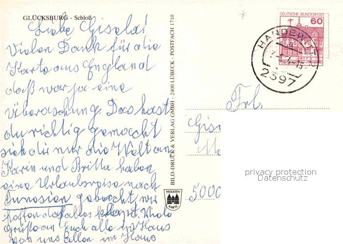 72701088 alte Postkarte Gluecksburg Ostseebad Schloss Fliegeraufnahme postalisch gelaufen Erhaltung siehe scans [FriedD77] KatCode: 11110001059113