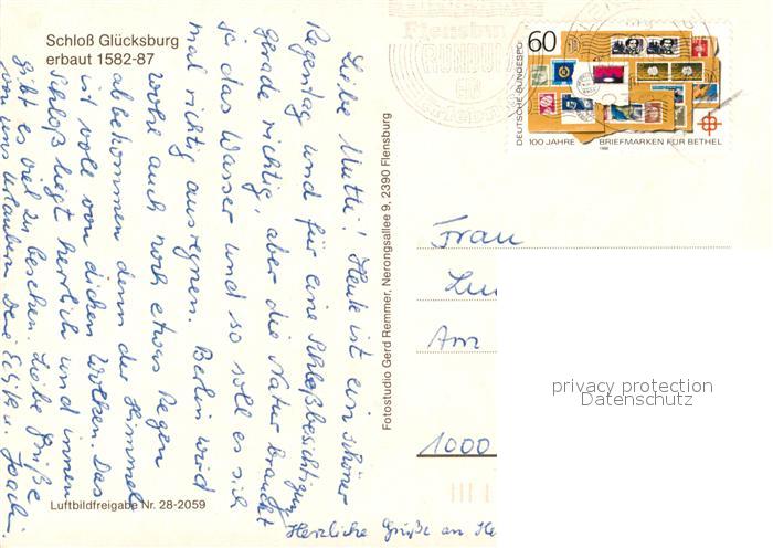73210952 alte Postkarte Gluecksburg Ostseebad Schloss Gluecksburg Fliegeraufnahme postalisch gelaufen Erhaltung siehe scans [WerneD78] KatCode: 11110001059113