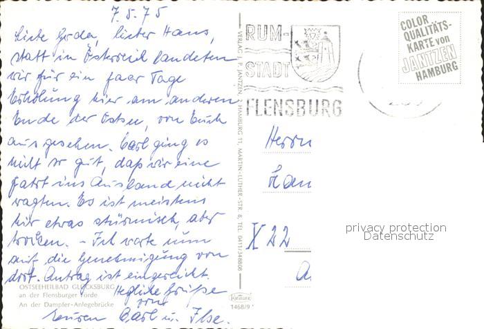 72102321 alte Postkarte Gluecksburg Ostseebad Seebruecke STrand postalisch gelaufen Erhaltung siehe scans KatCode: 11110001059113