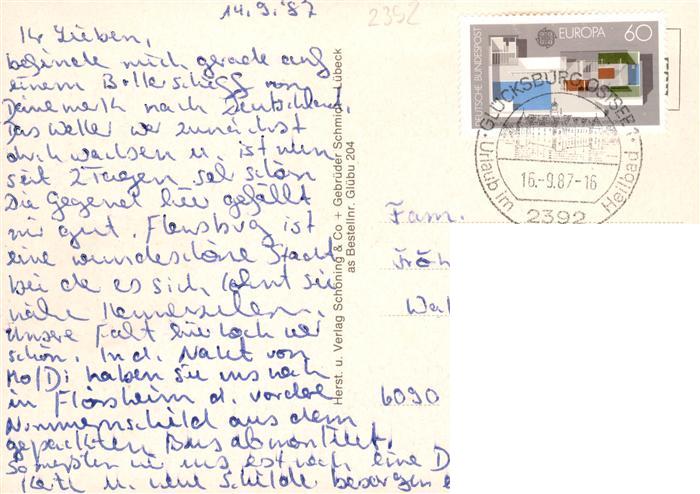 73940538 alte Postkarte Gluecksburg Ostseebad Seniorenresidenz postalisch gelaufen Erhaltung siehe scans [FriedD77] KatCode: 11110001059113