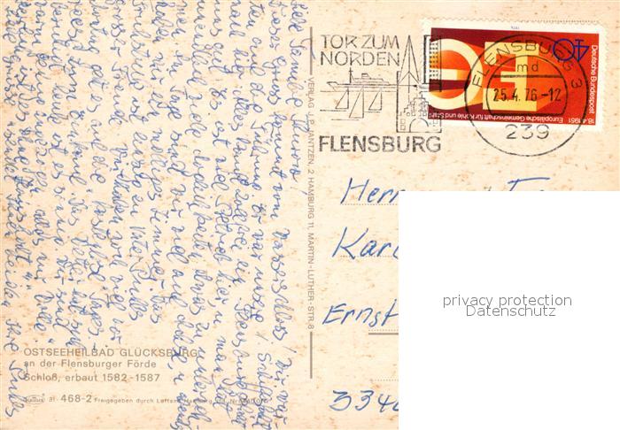72953229 alte Postkarte Gluecksburg Ostseebad Wasserschloss 16. Jhdt. Flensburger Foerde Fliegeraufnahme postalisch gelaufen Erhaltung siehe scans [FriedD77] KatCode: 11110001059113