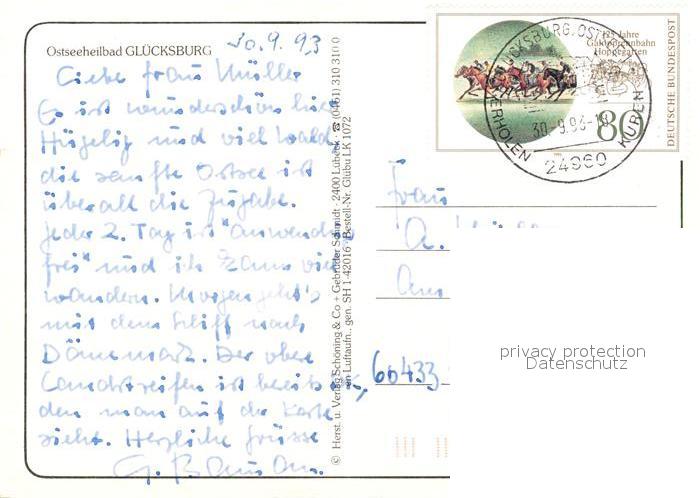 73214813 alte Postkarte Gluecksburg Ostseebad Wasserschloss Flensburger Foerde Fliegeraufnahme postalisch gelaufen Erhaltung siehe scans [FriedD77] KatCode: 11110001059113