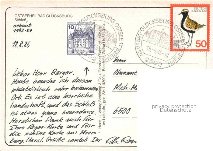 72878553 alte Postkarte Gluecksburg Ostseebad Wasserschloss Fliegeraufnahme postalisch gelaufen Erhaltung siehe scans [FriedD77] KatCode: 11110001059113