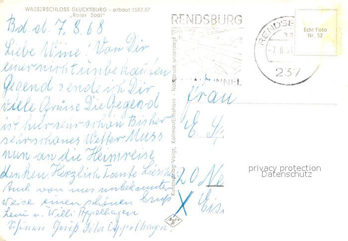 73335434 alte Postkarte Gluecksburg Ostseebad Wasserschloss Roter Saal postalisch gelaufen Erhaltung siehe scans [FriedD77] KatCode: 11110001059113