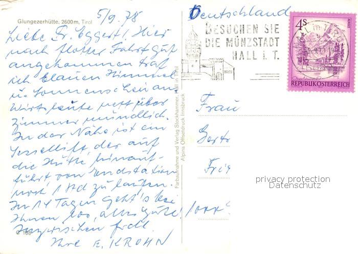 73303607 alte Postkarte Glungezerhuette Berghuette Alpenpanorama postalisch gelaufen Erhaltung siehe scans [FriedD77] KatCode: 11390332070101