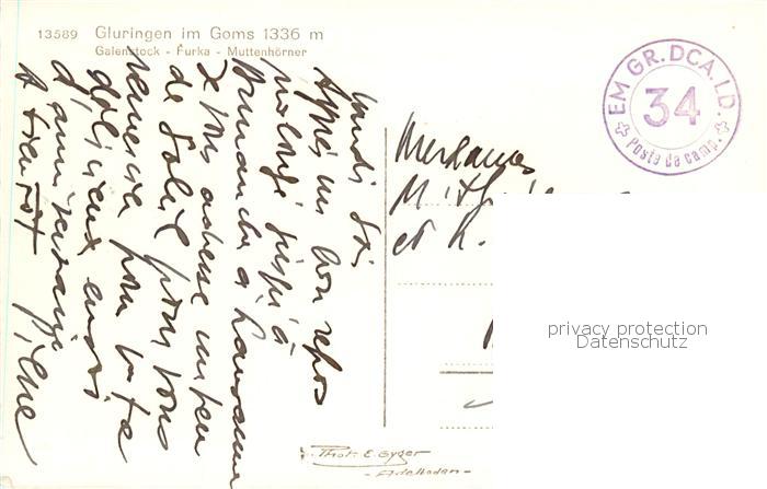 13831204 alte Postkarte Gluringen Goms VS mit Galenstock Furka Muttenhoerner postalisch gelaufen Erhaltung siehe scans [FriedD77] KatCode: 11470230705416