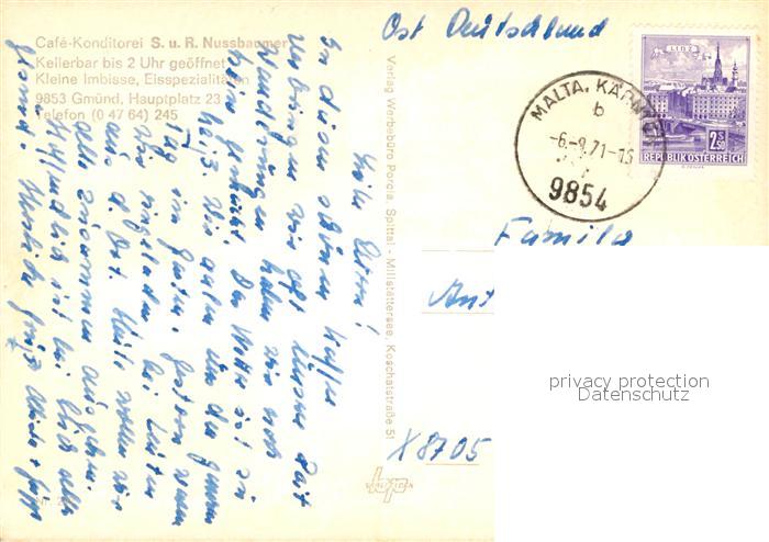 73033357 alte Postkarte Gmuend Kaernten Cafe-Konditorei Nussbaumer postalisch gelaufen Erhaltung siehe scans [PaolaD17] KatCode: 11390212020608