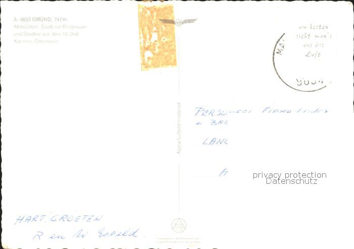 72319555 alte Postkarte Gmuend Kaernten Fliegeraufnahme Ringmauer Stadttor postalisch gelaufen Erhaltung siehe scans KatCode: 11390212020608