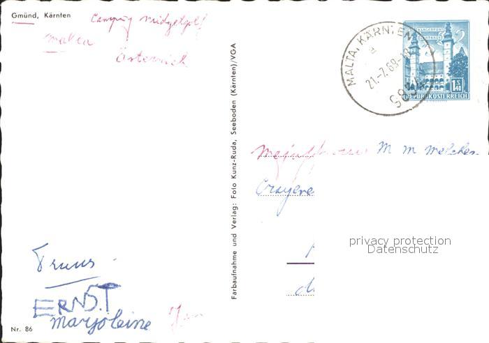 71974478 alte Postkarte Gmuend Kaernten Kirche Tor Burg postalisch gelaufen Erhaltung siehe scans KatCode: 11390212020608