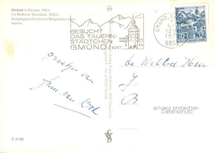 72926940 alte Postkarte Gmuend Kaernten Malteiner Sonnblick postalisch gelaufen Erhaltung siehe scans [NatalD47] KatCode: 11390212020608