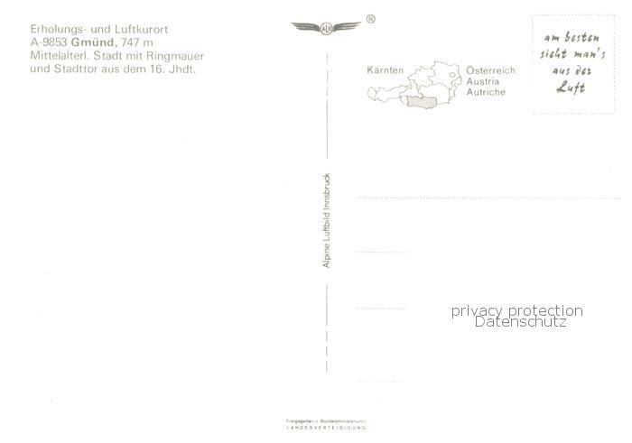 73789137 Gmuend Kaernten Mittelalterl Stadt mit Ringmauer und Stadttor Fliegeraufnahme postalisch nicht gelaufen Erhaltung siehe scans [WerneD78] KatCode: 11390212020608