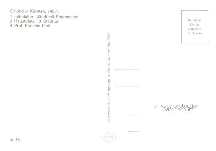 73789138 Gmuend Kaernten Mittelalterliche Stadt mit Stadtmauer Hauptplatz Stadttor Prof Porsche Park postalisch nicht gelaufen Erhaltung siehe scans [WerneD78] KatCode: 11390212020608