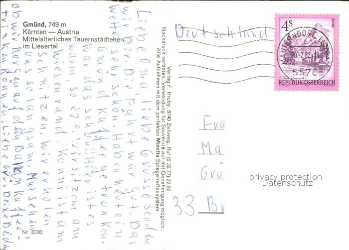 72446492 alte Postkarte Gmuend Kaernten Park Statue Stadttor postalisch gelaufen Erhaltung siehe scans KatCode: 11390212020608
