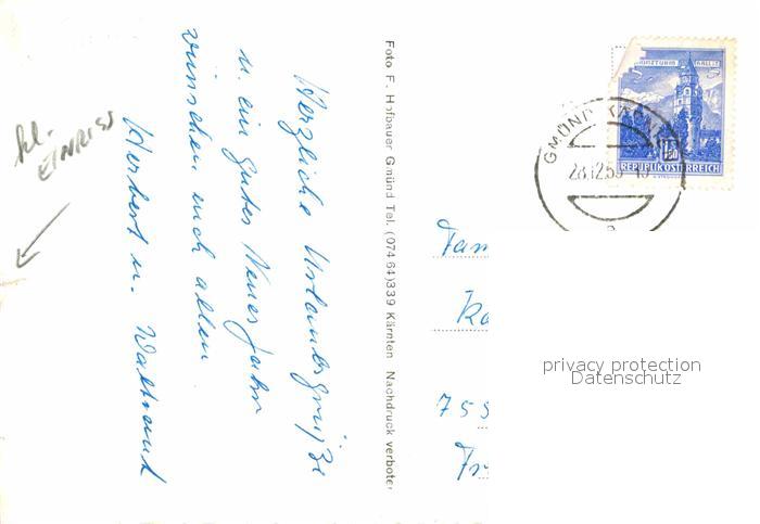 12712391 alte Postkarte Gmuend Kaernten Pension Sonnenheim postalisch gelaufen Erhaltung siehe scans [AndreD76] KatCode: 11390212020608