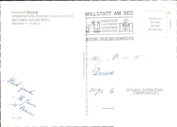 72463345 alte Postkarte Gmuend Kaernten Stadtblick Teilansichten Schloss postalisch gelaufen Erhaltung siehe scans KatCode: 11390212020608