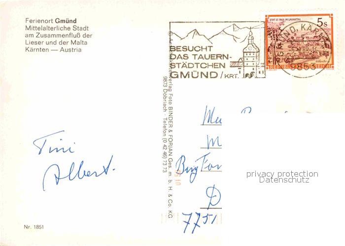 72869489 alte Postkarte Gmuend Kaernten Zusammenfluss von Lieser und Malta postalisch gelaufen Erhaltung siehe scans [LiesaD40] KatCode: 11390212020608