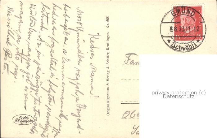 71494416 alte Postkarte Gmuend Schwaebisch mit Rechberg postalisch gelaufen KatCode: 11110008136065