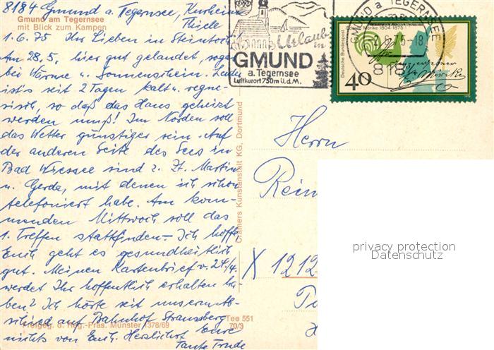 73101140 alte Postkarte Gmund Tegernsee Fliegeraufnahme mit Kampen postalisch gelaufen Erhaltung siehe scans [WerneD78] KatCode: 11110009182132