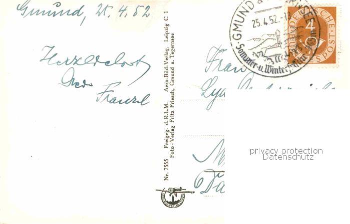 72775201 alte Postkarte Gmund Tegernsee Flugaufnahme postalisch gelaufen Erhaltung siehe scans [KathaD81] KatCode: 11110009182132