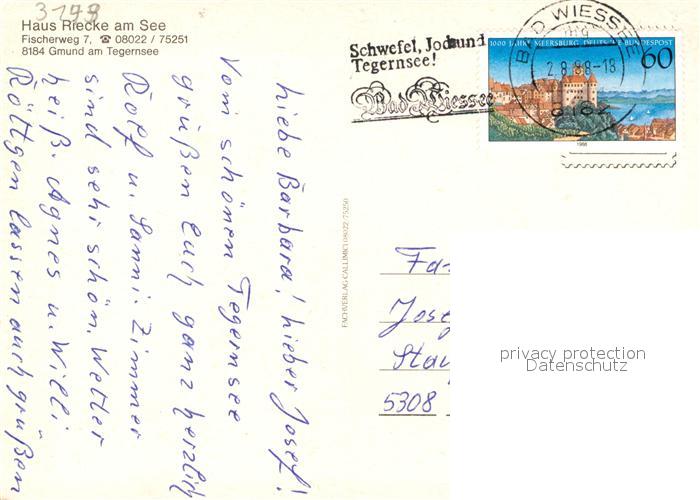 73203568 alte Postkarte Gmund Tegernsee Haus Riecke am See Garten Terrasse postalisch gelaufen Erhaltung siehe scans [FriedD77] KatCode: 11110009182132