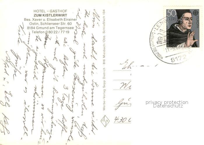 73722238 alte Postkarte Gmund Tegernsee Hotel Zum Kistlerwirt Aussenansicht postalisch gelaufen Erhaltung siehe scans [LiesaD40] KatCode: 11110009182132