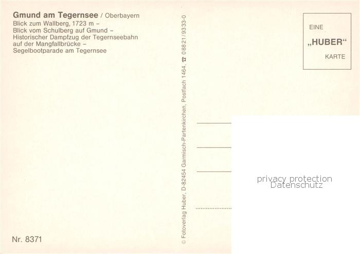 73839826 Gmund Tegernsee Panorama Blick zum Wallberg Historischer Dampfzug Tegernseebahn Mangfallbruecke Kirche Segeln Huber Karte Nr 8371 postalisch nicht gelaufen Erhaltung siehe scans [FriedD77] KatCode: 11110009182132