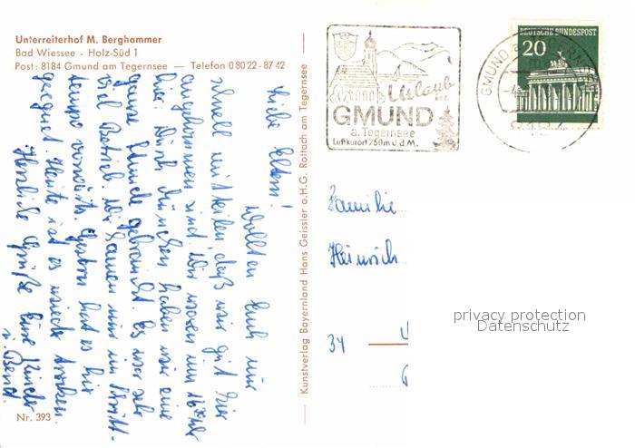 72855643 alte Postkarte Gmund Tegernsee Unterreiterhof Berghammer postalisch gelaufen Erhaltung siehe scans [AndreD76] KatCode: 11110009182132