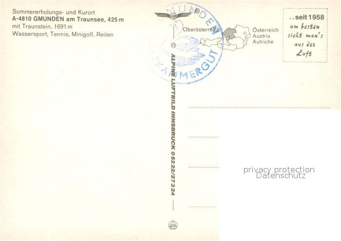 73050723 Gmunden Salzkammergut Fliegeraufnahme postalisch nicht gelaufen Erhaltung siehe scans [KathaD81] KatCode: 11390315040705
