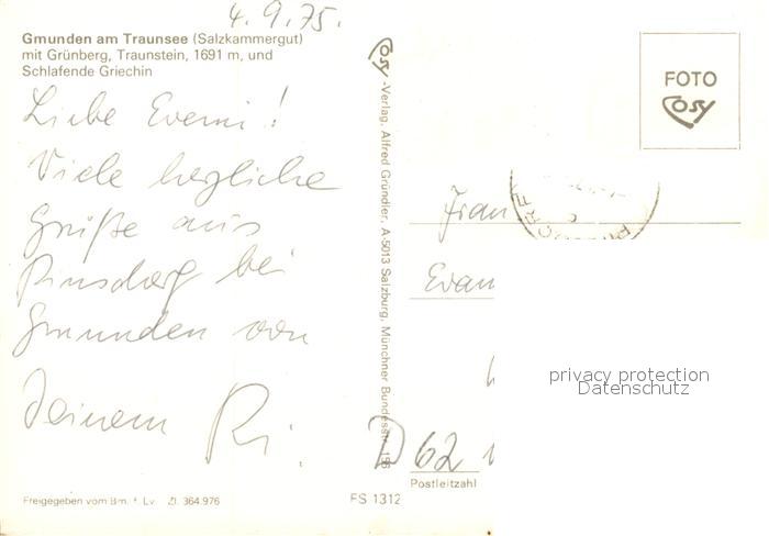 73295913 alte Postkarte Gmunden Salzkammergut Fliegeraufnahme mit Traunsee Gruenberg Traunstein und Schlafende Griechin postalisch gelaufen Erhaltung siehe scans [WerneD78] KatCode: 11390315040705