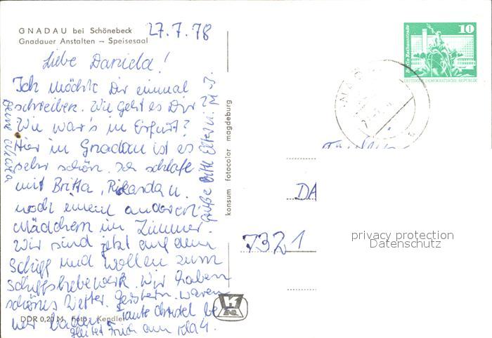 72091729 alte Postkarte Gnadau Gnadauer Anstalten Speisesaal postalisch gelaufen KatCode: 11110015089140