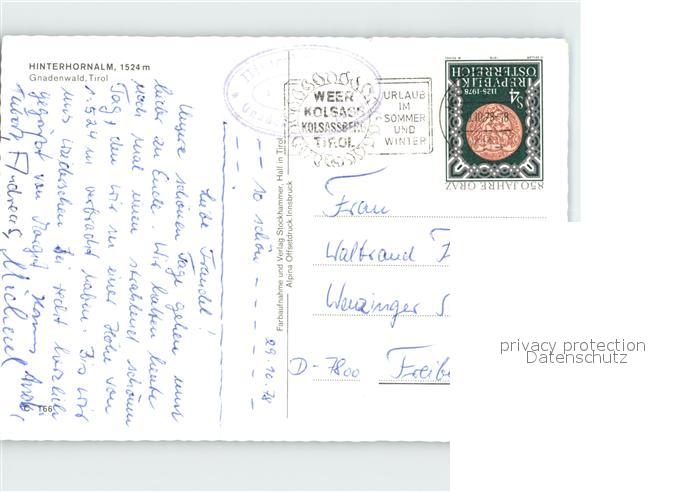 72921907 alte Postkarte Gnadenwald Hinterhornalm postalisch gelaufen Erhaltung siehe scans [NatalD47] KatCode: 11390332070311