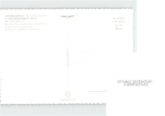 72331592 Gnadenwald Michaelerhof Fliegeraufnahme postalisch nicht gelaufen Erhaltung siehe scans KatCode: 11390332070311