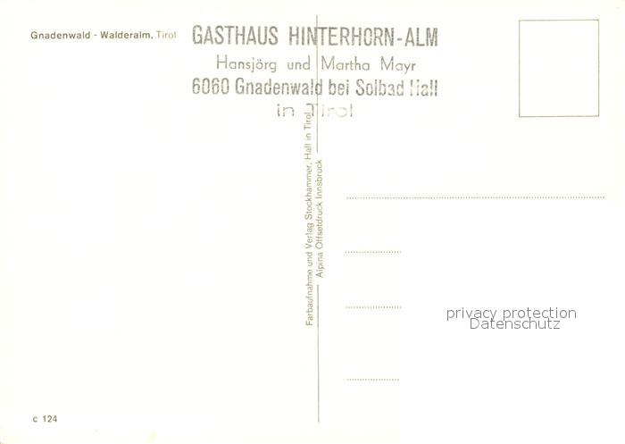 73061246 Gnadenwald Walderalm Berggasthaus Bergsee Alpen postalisch nicht gelaufen Erhaltung siehe scans [FriedD77] KatCode: 11390332070311