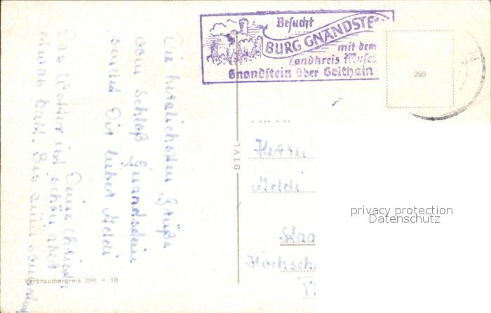 72172162 alte Postkarte Gnandstein Schloss postalisch gelaufen Erhaltung siehe scans KatCode: 11110014379370