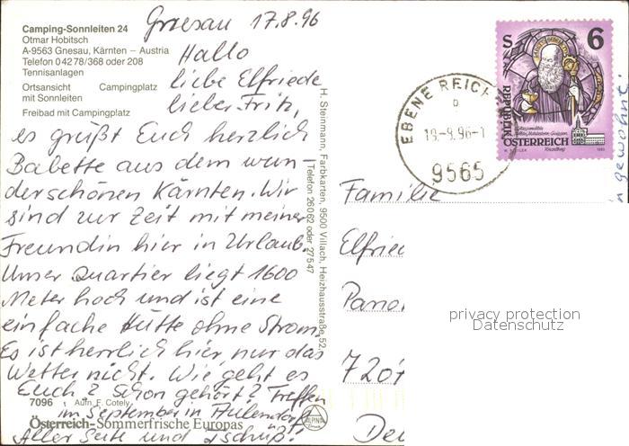 71998696 alte Postkarte Gnesau Camping Sonnleiten Hobitsch postalisch gelaufen Erhaltung siehe scans KatCode: 11390212021004