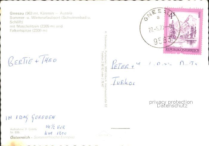 72094929 alte Postkarte Gnesau mit Moscheliten und Falkertspitze postalisch gelaufen Erhaltung siehe scans KatCode: 11390212021004