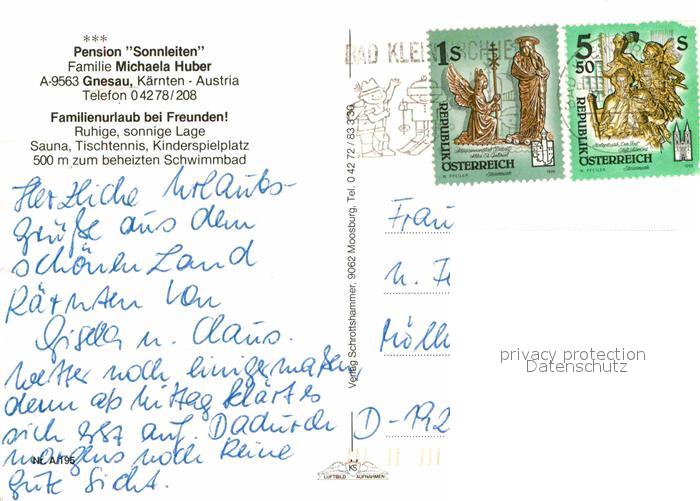 72667043 alte Postkarte Gnesau Pension Sonnleiten postalisch gelaufen Erhaltung siehe scans [LiesaD40] KatCode: 11390212021004