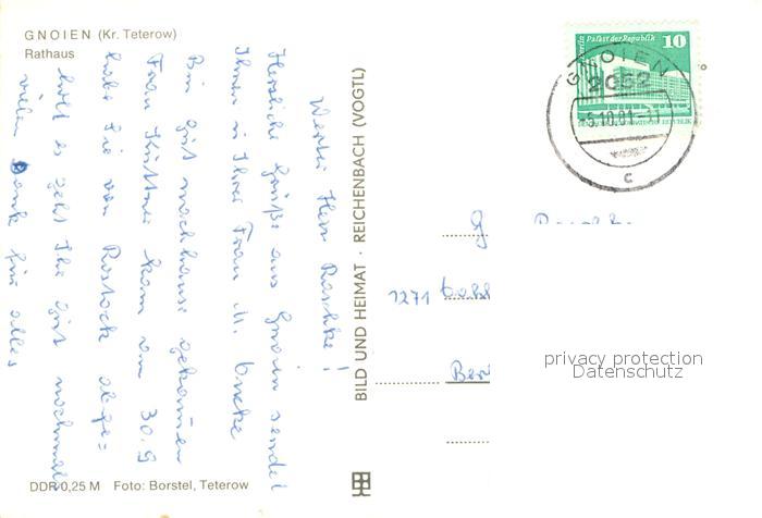 73675876 alte Postkarte Gnoien Rathaus postalisch gelaufen Erhaltung siehe scans [FriedD77] KatCode: 11110013053022